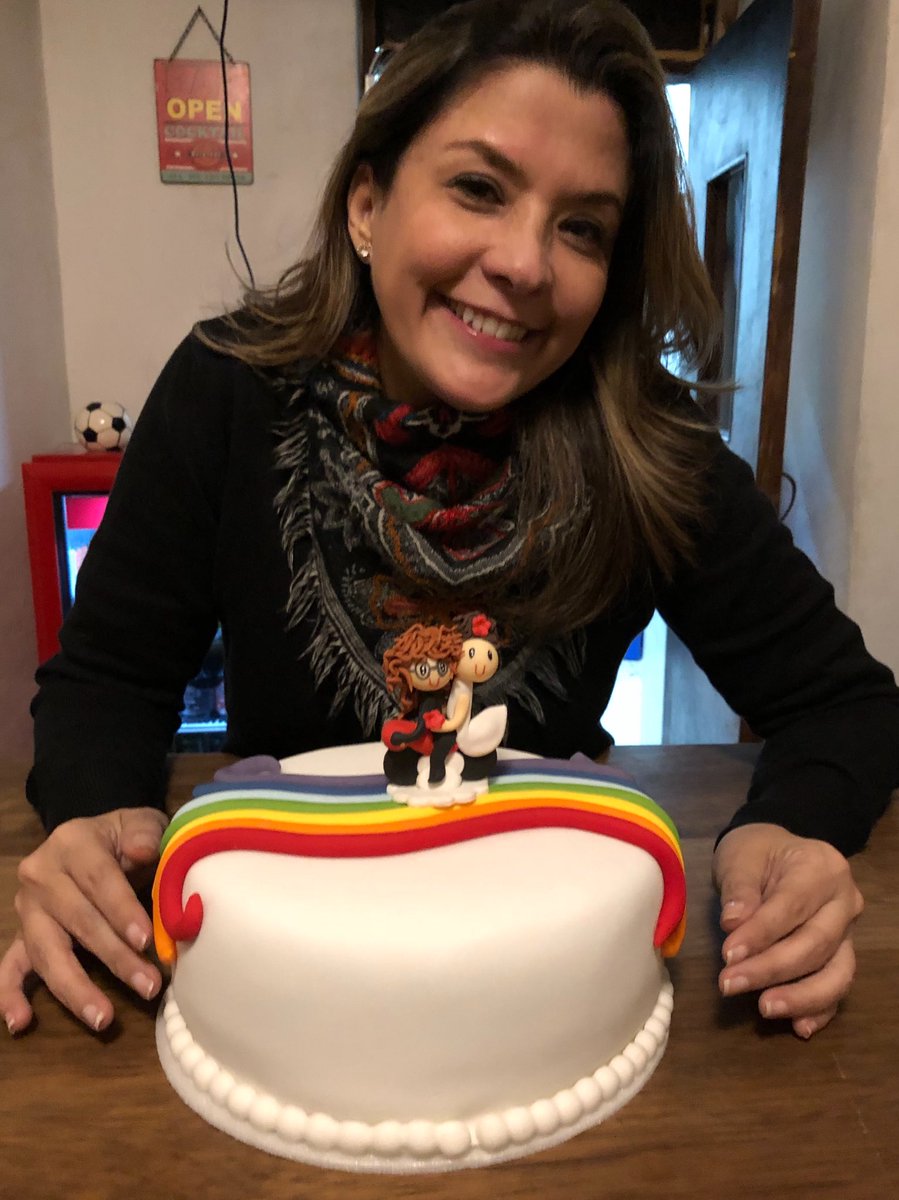 Esta podría ser tranquilamente una torta para la boda de cualquier persona de la comunidad. Criado en los 90 Damián cuenta que en su adolescencia no contó con modelos de personas LGBT en los medios espejos en los que pudiera reflejarse. Costar algo la torta un pan.